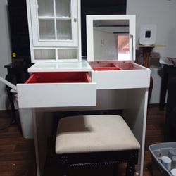 3-in-1 White Vanity Set: Flip-Top Mirror Desk, Storage Hutch & Padded Stool$125San Antonio, TX