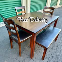 Dining Set Table 4 Chairs and Bench Wood and Faux Leather$335San Antonio, TX