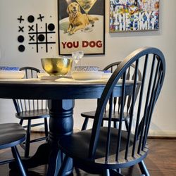 Solid Oak Pedestal Dining Table + 4 Chairs— 42" Round (Leaf Not Included)$500Alamo Heights, TX