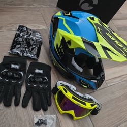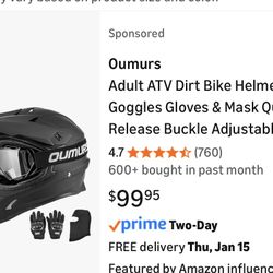 OUMURS DOT Adult ATV Dirt Bike Helmet with Goggles Gloves & Mask Adjustable Sun Visor Motorcycle Adult Helmet Off-Road Motocross Downhill Moped MX for$55San Antonio, TX