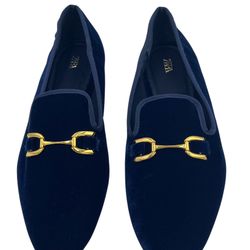 Zara Loafers Shoes Women’s 41 Blue Flat Casual Gold Buckle Slip On Velvet Type$45San Antonio, TX