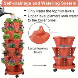 Stackable Flower Pots. 6 Levels Vertical Garden. Brown. Portable On Wheels. Sturdy PPP. Flower Disks & Drainage Nets Included $30San Antonio, TX