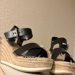 Black leather espadrille wedge sandals #summer - all man made material #heels$8San Antonio, TX