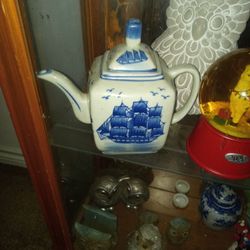 Blue And White Vintage Tea Kettle And Blue And White Vintage Container With Lid$40San Antonio, TX