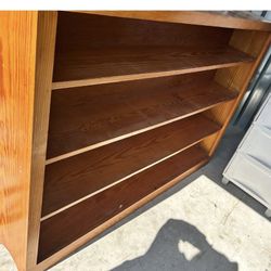 Sturdy and spacious wooden bookcase, comfortable $95 and healthy green leather sofa$300San Antonio, TX