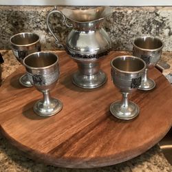 Antique pewter from Bolivia includes pitcher (or decanter) and 4 wine goblets In Excellent Condition$110San Antonio, TX