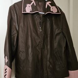 Faux Leather Jacket with Pink Floral Accents$10Castroville, TX
