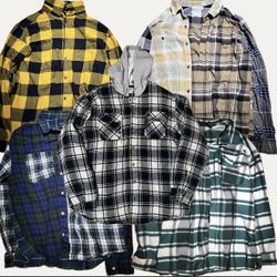 Lot of 5 flannel/plaid pattern long sleeve shirts and hoodie size Large and XLarge$40San Antonio, TX