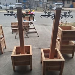 Box Planter With a Pole In The Middle and Two Hanger To Pot Plant 🪴 with Solar Lights $150 For both $150San Antonio, TX