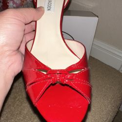 Salvatore Ferragamo Women's Red Heels Sandals NEVERS Red Calf Size 7.5 B$199Helotes, TX