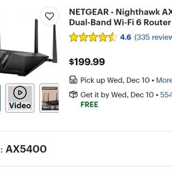 Netgear NightHawk AX5300 Wifi Router$25Converse, TX