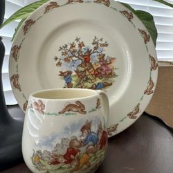 Royal Doulton Bunnykins 2 Piece Childrens Set Plate and Cup Cute Bunnies $35Bulverde, TX