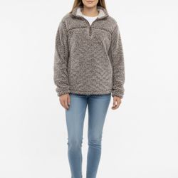 Grizzly Sherpa Women’s M Cozy Brown Sherpa Jacket Brown Pullover 3/4 Zip $35San Antonio, TX