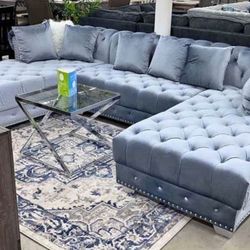 Jordan Gray Velvet Sectional With Double Chaise. Brand New. $1,199San Antonio, TX