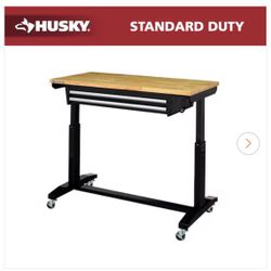 NEW IN BOX Husky Tool Storage 46 in. W x 24 in. D 2-Drawer Adjustable Height Black Worktable with Solid Wood Top$225San Antonio, TX