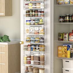 Moforoco White Narrow 9-Tier Over The Door Pantry Organizer, Pantry Organization and Storage, Metal Hanging Basket Wall Spice Rack Seasoning Shelves, $30San Antonio, TX