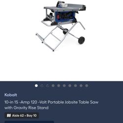 Brand New in Box Kobalt 10-in 15 -Amp 120 -Volt Portable Jobsite Table Saw with Gravity Rise Stand$200Natalia, TX