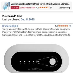 Travel Vacuum Bags with Pump, 15 Pack Vacuum Storage Bags with Powerful -70KPa Suction, for Maximum Compression in Luggage, Suitcase, Travel and Home $15San Antonio, TX