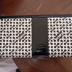 Coach Bleecker black and white striped coated canvas and leather wristlet$25San Antonio, TX