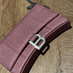 Authentic Balenciaga Sparkling Fabric XS Hourglass Wallet On Chain Sweet Pink$300San Antonio, TX