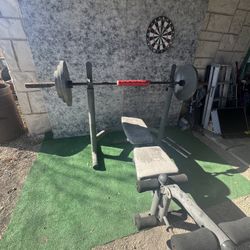 Weight Bench, Curl bar, Curl Machine, And Weights$400San Antonio, TX