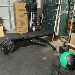 Weight Bench, Curl bar, Curl Machine, And Weights$400San Antonio, TX