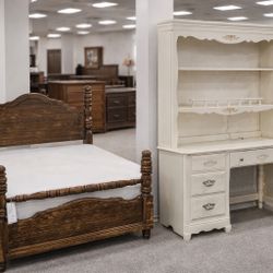 Vintage White Desk with Hutch + Rustic Wood Bed Frame$750San Antonio, TX