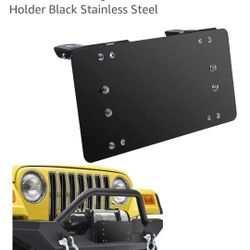 Flip Up License Plate Mount Winch Roller Fairlead Mounting Bracket 8 3/4 Inch Holder Black Stainless Steel