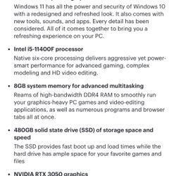SlateMR Gaming Desktop - Intel i5-11400F NVIDIA GeForce RTX 3050 8GB - 480GB SSD$600Schertz, TX