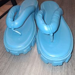 Forever 21 aqua blue chunky platform slides Sandals Wedges Beach$30Austin, TX