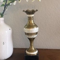 Midcentury Brass Vase with Mother of Pearl Inlay on Black Marble Stand$174Schertz, TX