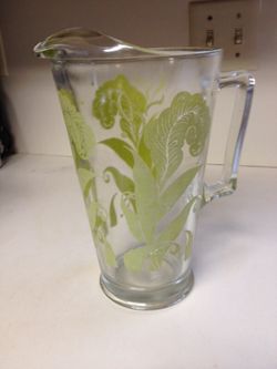 Antique Rose depression glass etchantique yellow stenciled glass pitcher$50New Braunfels, TX