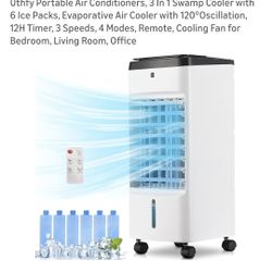 Uthfy Portable Air Conditioners, 3 In 1 Swamp Cooler with 6 Ice Packs, Evaporative Air Cooler with 120°Oscillation, 12H Timer, 3 Speeds, 4 Modes, Remo$90Seguin, TX