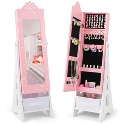 Jewelry Cabinet with Full-Length Mirror & Foldable Drawer - Pink$70Seguin, TX