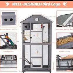65" Bird Cage Wooden Large Parakeet Cage Flight Aviary on Wheels with Perches$85Spring Branch, TX