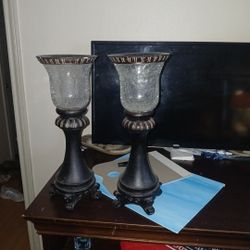 Pair of Black Pedestal Crackled Glass Pillar Candle Holders$45Seguin, TX