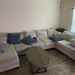 New Pink Velvet Reversible Sectional And Ottoman$699Austin, TX