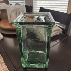 Vintage Frosted & Clear Glass Ivy Print Heavy Vase w/ Hand Stitched Covering $20Schertz, TX