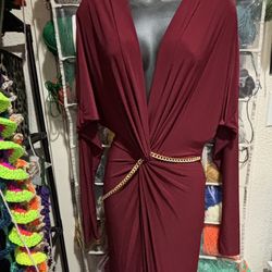 Long Slit Formal Marroon Dress With Gold Waist Chain $45New Braunfels, TX