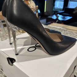 Women's Size 8.5 black feather clear strap mule heels $25Austin, TX