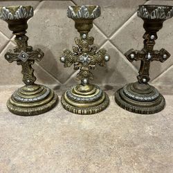 Set of 3 Pillar Ornate Resin Antique Gold Finished Cross Candle Holders$34Schertz, TX