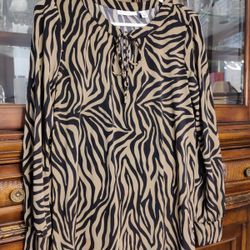 Susan Graver Animal Print Liquid Knit Blouse Top Mushroom Tan Black Women's S$20Austin, TX