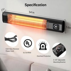 Wall-Mounted Electric Patio Heater, 34" 1500W Infrared Heater With Motion Sensor, IPX5 Waterproof, 9 Heat Level & 9H Timer, Indoor & Outdoor Heaters f$199Mckinney, TX