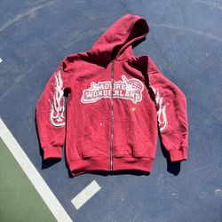 Red Acid Wash Rhinestone Zip Up “AdoreWonderland” Limited Edition$50Prosper, TX
