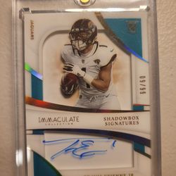 Beautiful IMMACULATE COLLECTION SHADOWBOX SIGMATURES " Travis Etienne Jr. " Numbered 09/99$225Prosper, TX