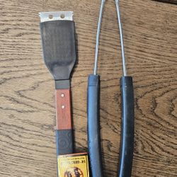 Grill Utensil Set – Spatula and Tongs with Wooden and Heat-Resistant Handles