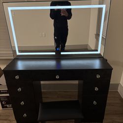 VOWNER Makeup Vanity Desk Table with Lighted Mirror, Power Outlet and 9 Drawers,$150Anna, TX