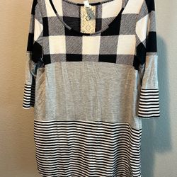 Black And Gray Plaid Shirt With Button Design On Back$3Leonard, TX