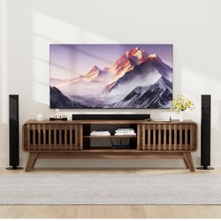 TV Stand Up to 65 Inches with Power Outlet, Wood Mid Century Modern TV Stand, Entertainment Center with Storage, Brown$180Mckinney, TX