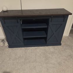 Blue wooden barn door sliding TV stand$175Celina, TX